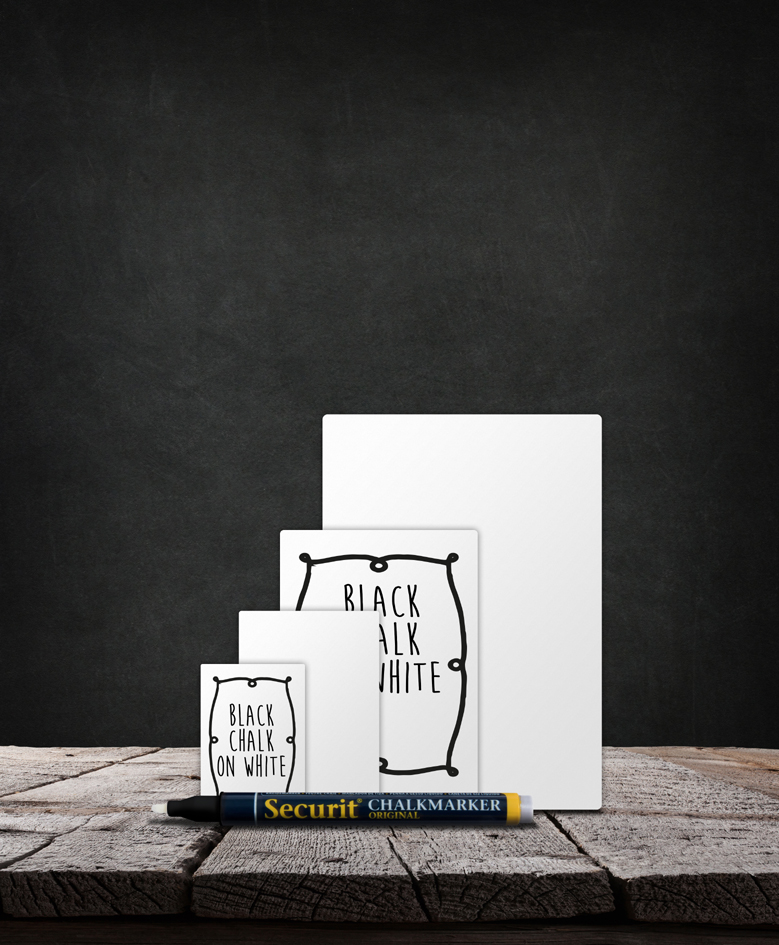 - 1 x Kreidemarker (schwarzer Stift bei weißer Tafel, weißer Stift bei schwarzer Tafel), Strichstärke: 1-2 mm