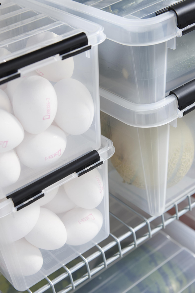 • transparente Box mit Deckel und Klippverschlüssen