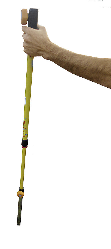Mit einfachen Auf- und Abwärtsbewegungen kann der Sonnenschirmhalter im Erdreich versenkt werden. Geeignet für Untergründe wie Wiesen, Sand oder Kies.