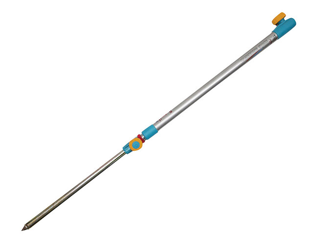 Mit einfachen Auf- und Abwärtsbewegungen kann der Sonnenschirmhalter im Erdreich versenkt werden. Geeignet für Untergründe wie Wiesen, Sand oder Kies.