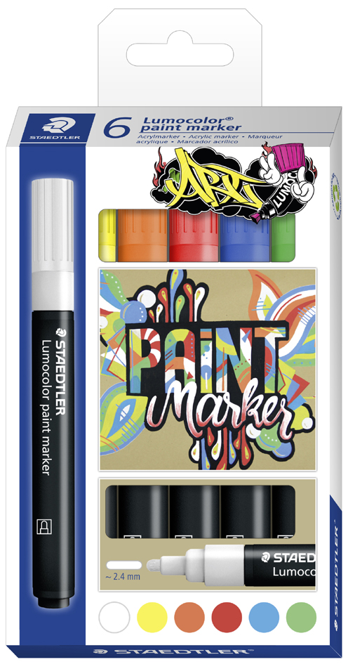 auf Wasserbasis, wisch- & wasserfest auf fast allen FlächenAcrylmarker Lumocolor paint marker, im Etui