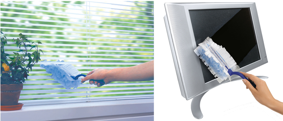 • flexibler Griff und Fasern ermöglichen leichteres Reinigen überall, insbesondere an schwer erreichbaren Stellen wie z.B. Jalousien, Bücherregalen und Lampen