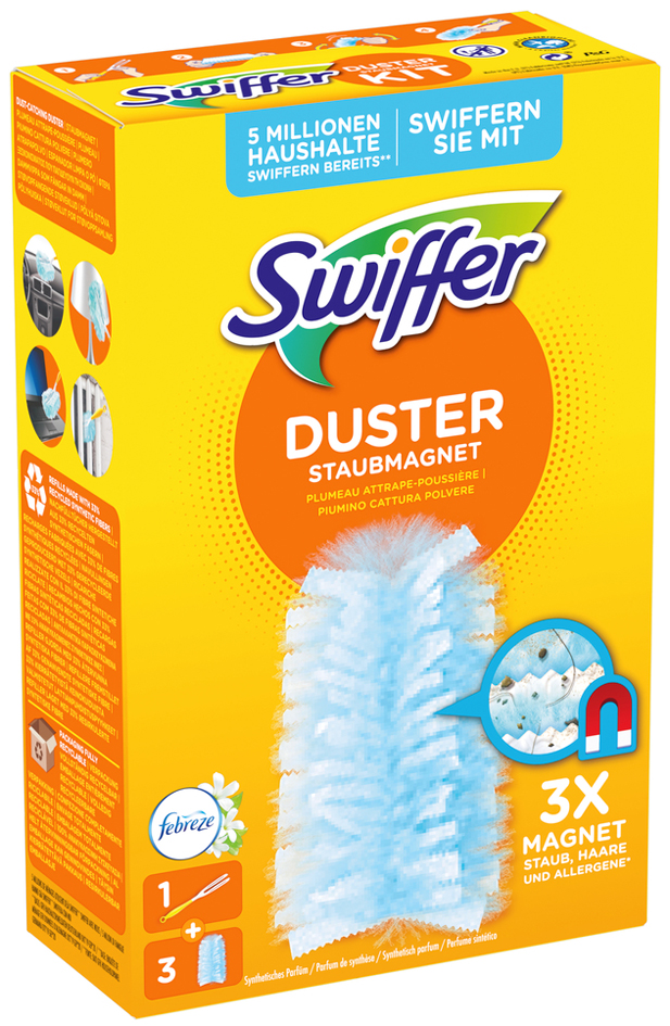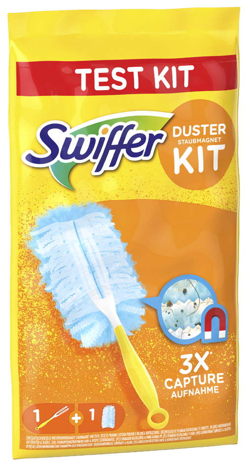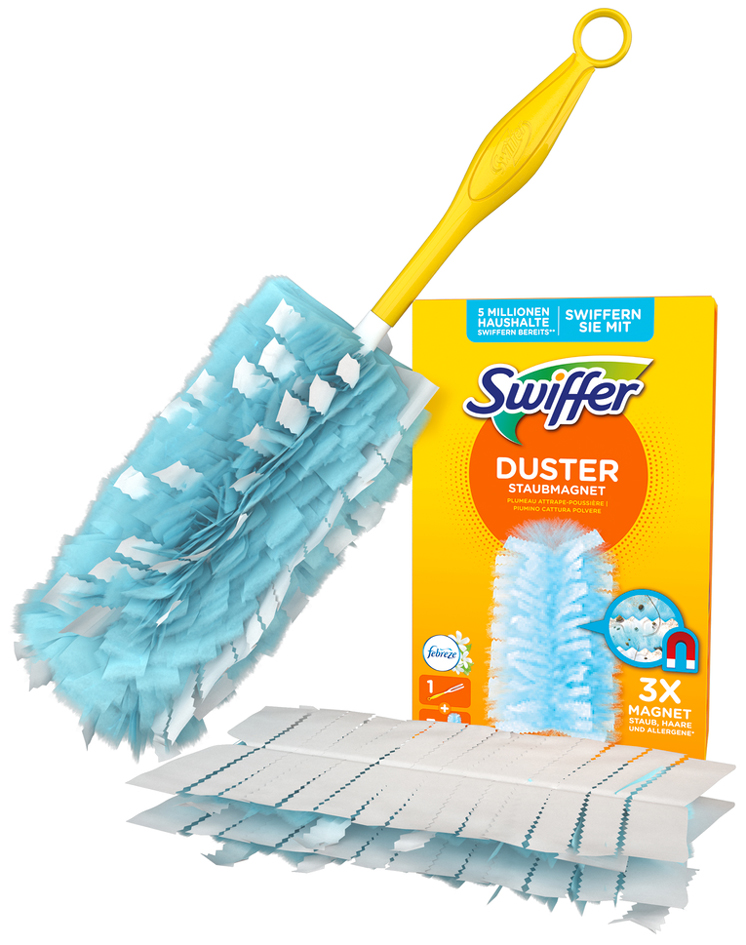 • im Gegensatz zu herkömmlichen Staubtüchern, die den Staub nur aufwirbeln, hält der Swiffer Staubmagent bis zu dreimal mehr Staub fest