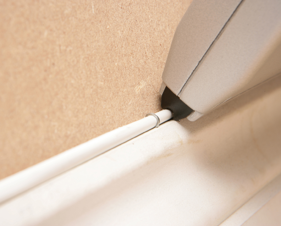 - zum Verlegen von Kabeln auf Sockelleisten und Türrahmen