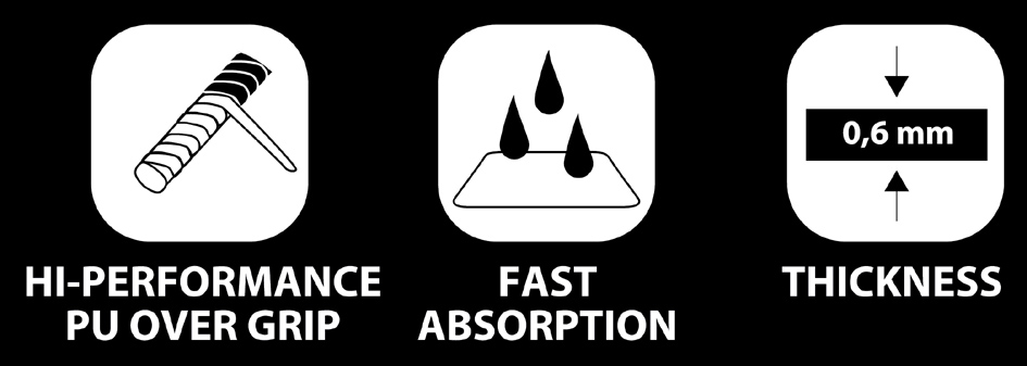 • wird über das Basisgriffband gewickelt, mit dem jeder Schläger werksseitig ausgestattet ist