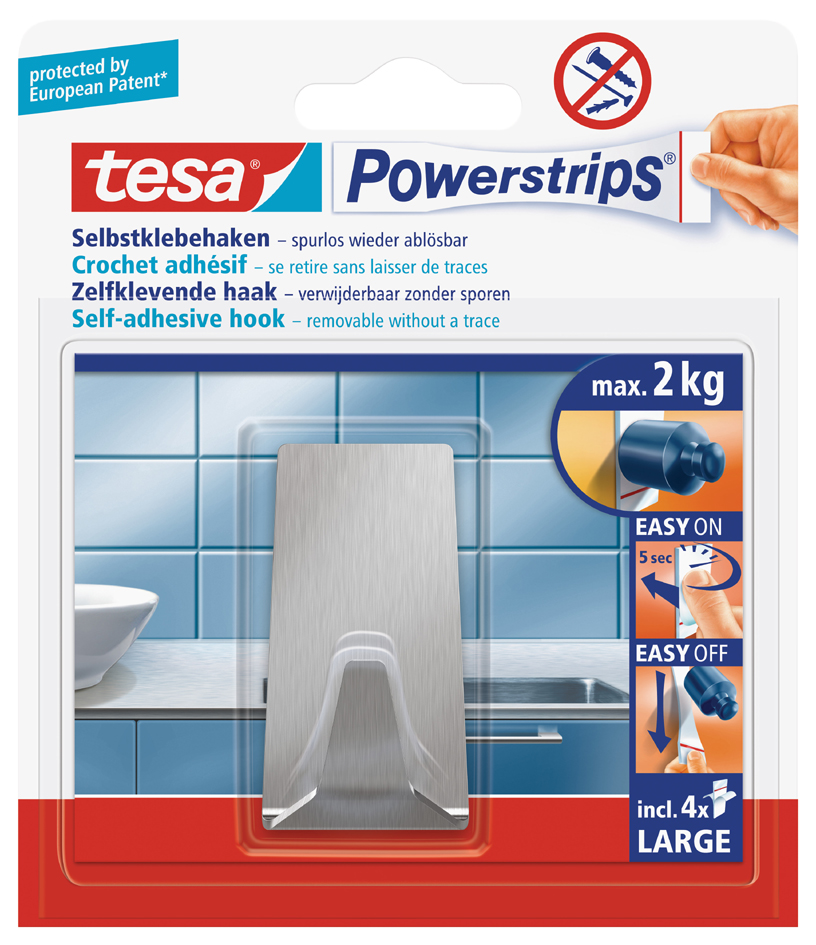 • jederzeit spurlos wieder ablösbar (von glatten, ausreichend festen Untergründen) durch die tesa Powerstrips® Technologie