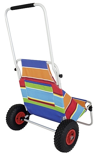 Der Beach Trolley ist neben Transporter auch ein bequemer Sitz mit einer Tragkraft von 100 kg. Die Räder sind luftgefüllt und verhindern ein Einsinken im Sand und dadurch ermöglichen sie einen bequemen und einfachen Transport. Klein zusammen klappbar und braucht wenig Platz im Auto.