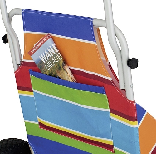 Transportwagen mit originalem Streifen-Design. Ideal für Strandausrüstung wie Kühltaschen, Stühle, Getränke und vieles mehr.