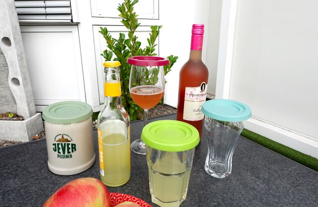 Nun können Sie Getränke draußen gemütlich genießen. Bienen, Wespen, Insekten aller Art fallen nun nicht mehr in die Trinkgläser.