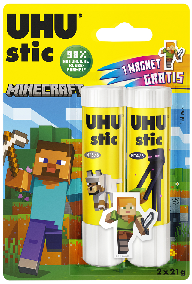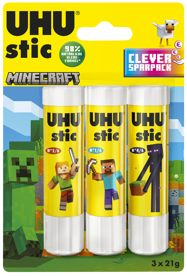 UHU Klebestift stic MINECRAFT, 21 g + 2x 8,2 g, Blister