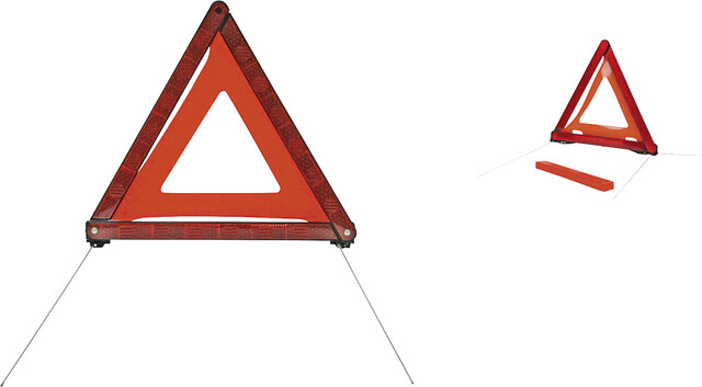 Pannenwarndreieck nach ECE-Regelung Nr. 27 genormt mit rotem Köcher im bruchsicherem Kunststoff-Etui verpackt.