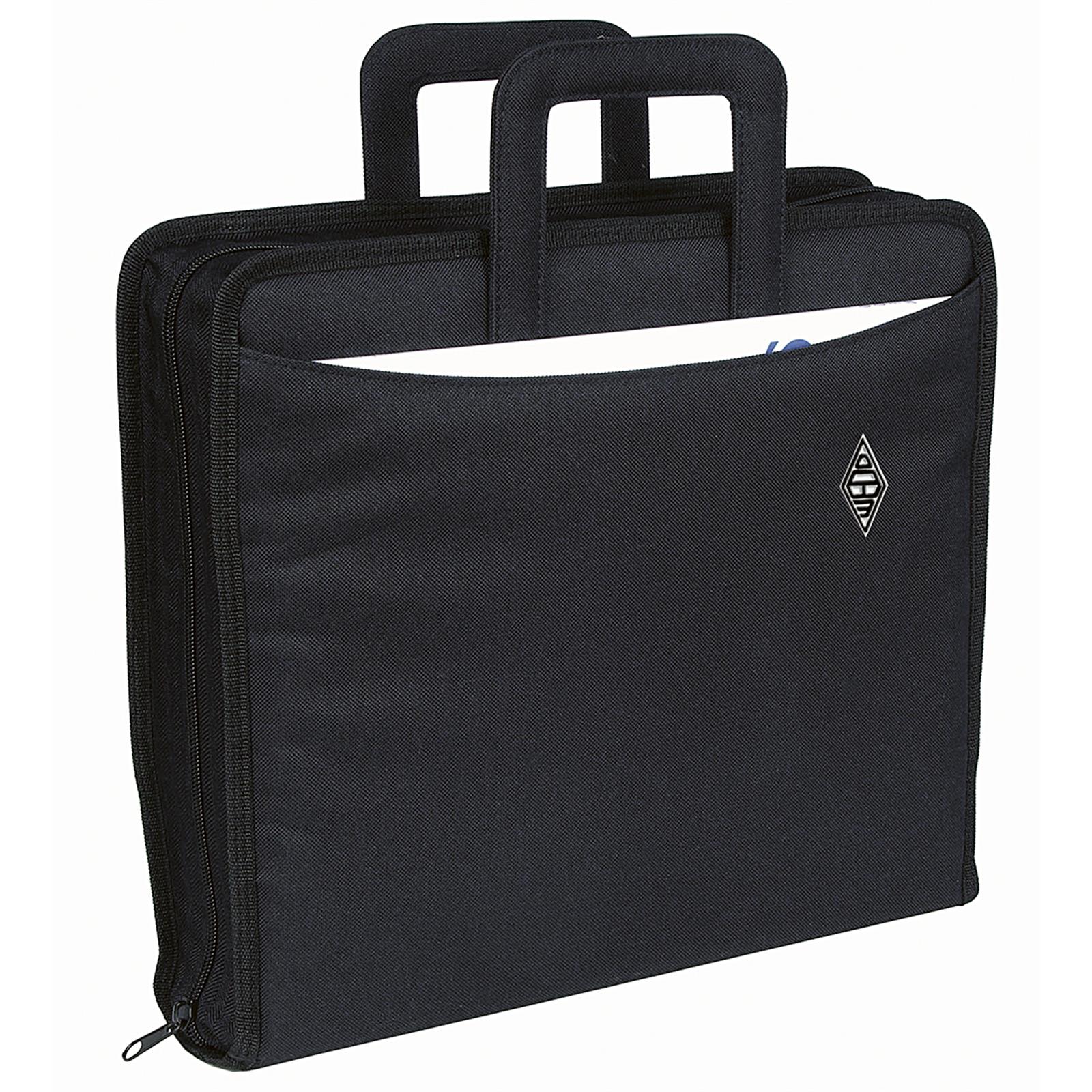 WEDO® Ordnertasche, schwarz. Verwandelt jeden A4-Ordner bis 75 mm Rückenbreite im Handumdrehen in eine Aktentasche mit Platz für Visitenkarten, Stifte, Taschenrechner und andere nützliche Dinge für eine Besprechung. Die Tasche wird mit einem Reißverschluss verschlossen und verfügt über zwei versenkbare Tragegriffe und zwei A4-Fächer außen. Pflegeleichtes Polyester. Maße: ca. 67 x 34,5 cm aufgeklappt. Verpackt in PE-Hülle.