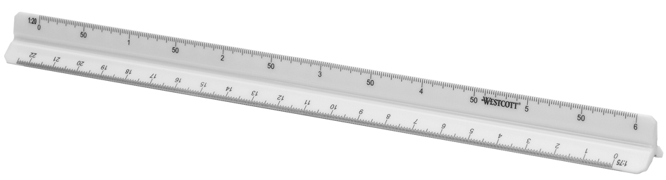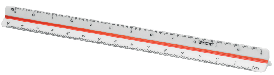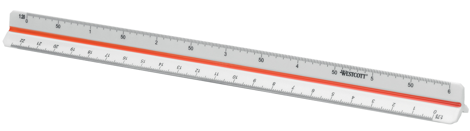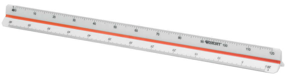 WESTCOTT Dreikant-Maßstab Architekt 1, aus Kunststoff, weiß